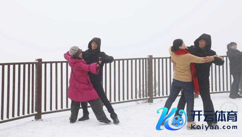 1月21日,重庆市梁平区,旅客在一不雅景台赏雪、游玩。从1月20日起,梁平区迎来强降温,高海拔地区出现大面积降雪。