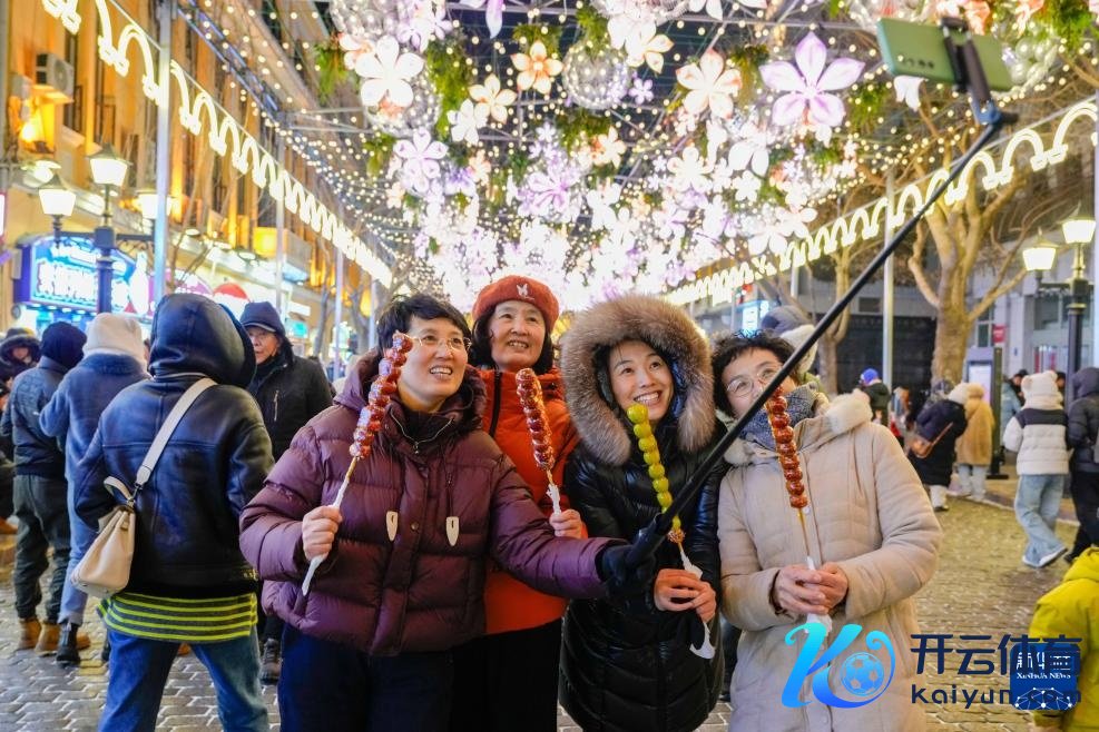 1月30日,旅客在哈尔滨中央大街上游玩、拍照。新华社记者 王建威 摄
