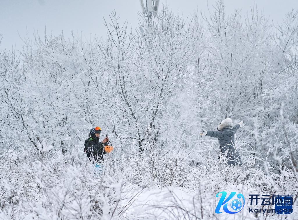 1月29日,旅客在吉林市万科松花湖度假区山顶赏玩峻岭雾凇。新华社记者 颜麟蕴 摄