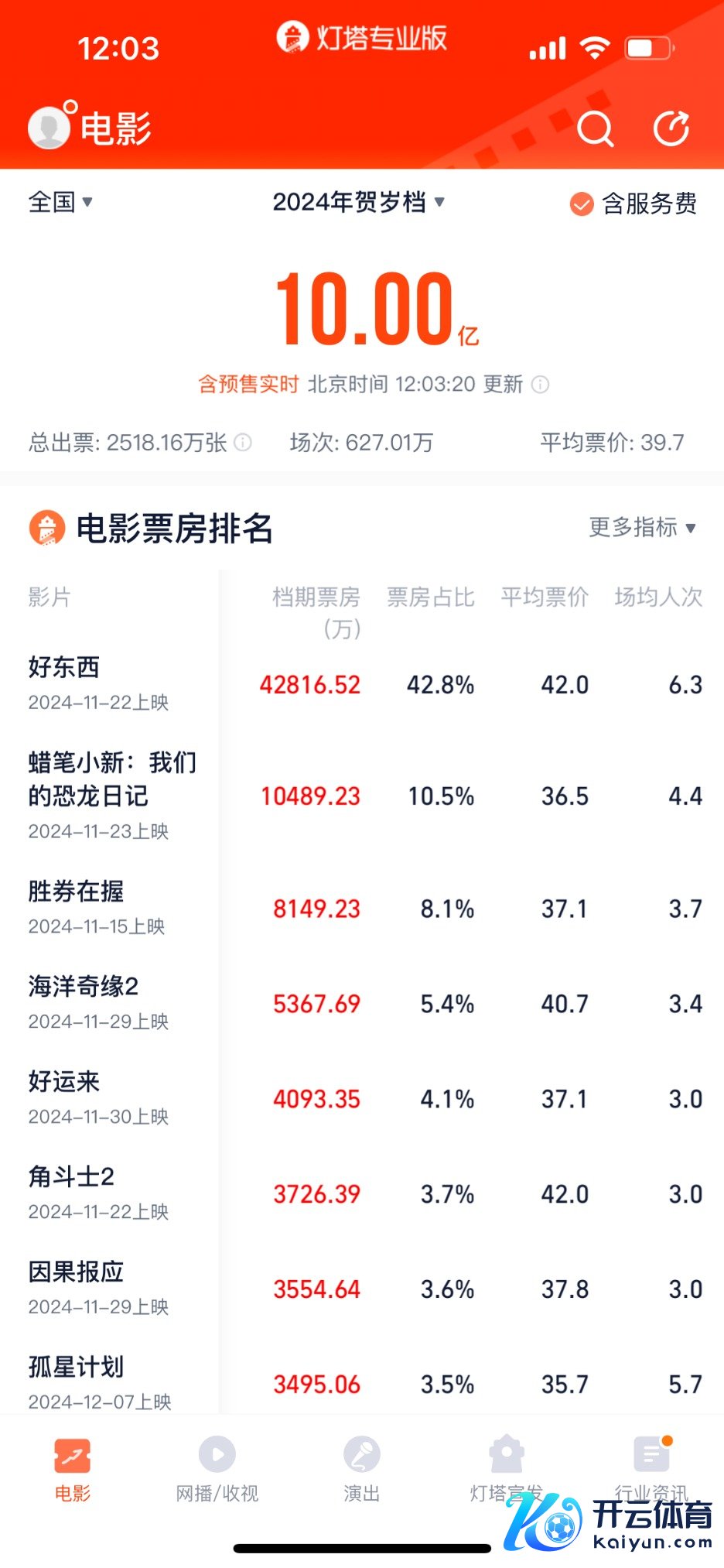 【大河财立方记者徐姣】灯塔专科版数据清楚,12月6日12时3分,2024年贺岁档(11月22日至12月31日)票房防碍10亿元。《好东西》自11月22日上映,同一14天拿下票房日冠,当今以4.55亿元的累计票房九游体育app娱乐,暂居档期票房首位;《蜡笔小新:咱们的恐龙日志》《海洋奇缘》暂居第二、第三位。