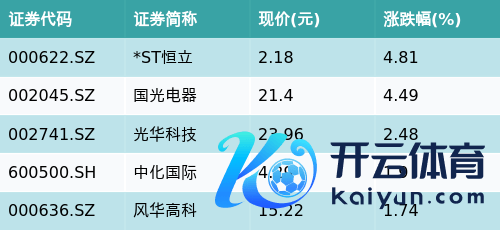 领域收盘,正极材料主题涨跌幅最高的五只股票为:*ST恒立(000622.SZ)、国光电器(002045.SZ)、光华科技(002741.SZ)、中化海外(600500.SH)与风华高科(000636.SZ)。笃信见下表: