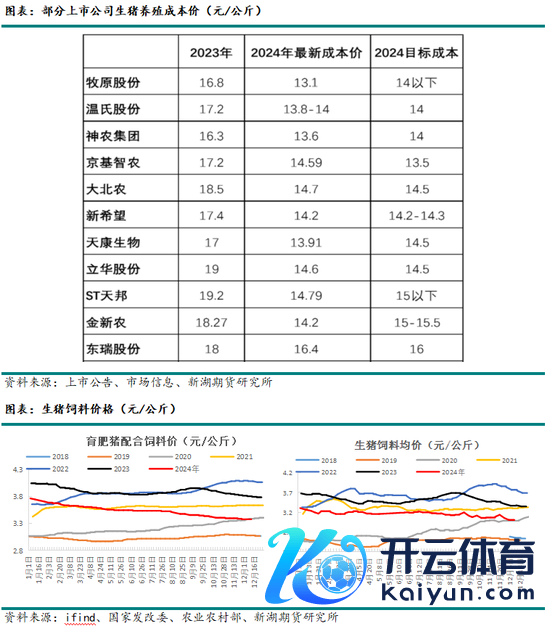 降本增效成为生猪企业损失周期下的生计法例,新产能替换旧产能,行业举座PSY彰着进步,仔猪存活率亦有提高,进而假造单头育肥猪的均派本钱;饲料方面,2024年饲料原料玉米和豆粕均有了较大幅度的下落,饲料本钱下移也给了企业在生猪价钱下行周期中喘气的契机。