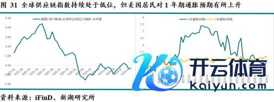 从商品中占比最大的二手车和新车价钱来看,新车价钱有所上升,仅二手车价钱有所回落,不外从前瞻方针曼海姆二手车价钱数据来看,其11月数据仍处于下行区间。除此除外,食物饮料、服装以及非耐用品分项价钱均上升,带动商品项通胀上行。另外,把柄纽约联储的访问,好意思国住户对1年内的通胀预期有所上升。笼统来看,现时全球供应链压力指数处于历史低位,改日核心商品项通胀仍有望下降,但仍需关注特朗普如若对中国加征大幅关税,对商品价钱的影响。