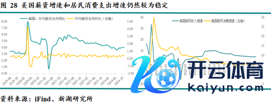二是赋闲率在近两年抓续上升,但薪资增速仍然较为恰当。 起原于家庭访问的赋闲率从2023年于今呈现上升态势,出奇是7月涉及“萨姆法规”激励阛阓对好意思国阑珊的担忧,但跟着赋闲率的回落,危急宣告祛除。从赋闲率的孝顺百分比同期结合去职率等数据,现时服务阛阓结构仍处于较为雄厚的状态,雇佣率和去职率的同步走低,也在侧面阐扬劳能源阛阓有所降温。除此除外,非农薪资同比和环比仍然保抓着较高的增速。由于薪资是住户可讹诈收入的重要起原,这一数据的增长可能对好意思国住户花费有一定的支抓作用。