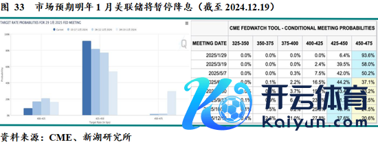 固然好意思联储12月点阵图揣度2025年有2次降息空间,但阛阓预期媲好意思联储更“鹰”,CME利率期货的交易结果清晰投资者以为好意思联储2025年降息只消1次。鲍威尔在会后收受采访时也示意“一些政策制定者还是运转将特朗普当选总统可能实施的更高关税纳入考量,好意思联储正在对特朗普的提出进行建模和评估”。 咱们以为好意思联储现时的鹰派表态可能为特朗普改日限定性政策以及打扰好意思联储寂然性留住了一定的政策空间,跟着好意思国经济的发展变动,好意思联储可能“先鹰后鸽”。