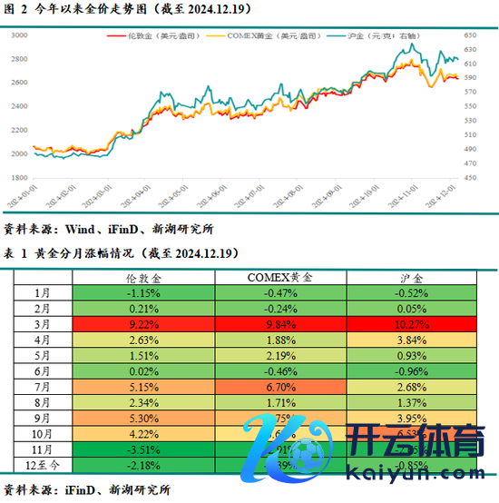 第三阶段是10月于今,好意思国“阑珊交易”证伪,“特朗普交易”轮流重叠地缘政事面貌升级。跟着好意思国劳能源阛阓和通胀数据续超预期,阛阓下调对好意思联储后续降息幅度的预期,出奇是将11月降息50bp的押注裁汰至25bp。好意思国大选方面,特朗普和哈里斯的竞争出现尖锐化的场所,两东说念主的支抓率在大选前几度出现回转的场所,阛阓的不笃定性抓续增大,重叠中东地缘面貌进一步升级,有关的避险资金流入黄金ETF推升金价。好意思国大选尘埃落定后,大齐前期避险资金赢利了结,同期“特朗普交易”高潮下好意思元抓续走高,使得金价承压。但在11月下半月由于俄乌冲突进一步升级,鼓动金价反弹。本月以来,“特朗普交易”有所落潮,但阛阓进一步下调好意思联储改日降息空间,金价守护高位震憾。另外,我国央行在11月规复购金,对短期金价有一定的支抓。