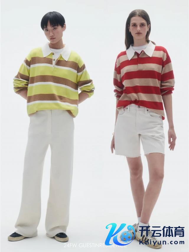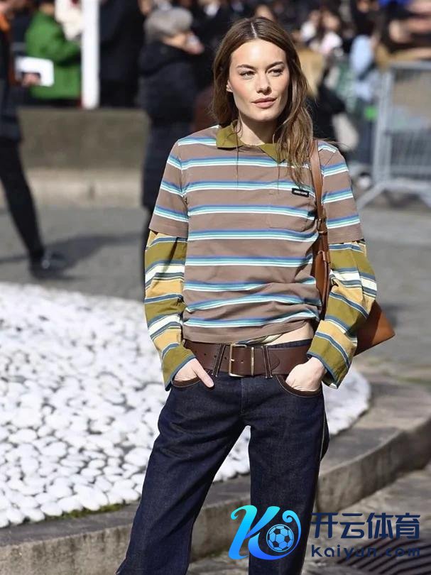 闲雅精早就穿上了相沿条纹 polo 衫,搭配牛仔裤、工装裤或半裙,齐能穿出不通常的嗅觉。