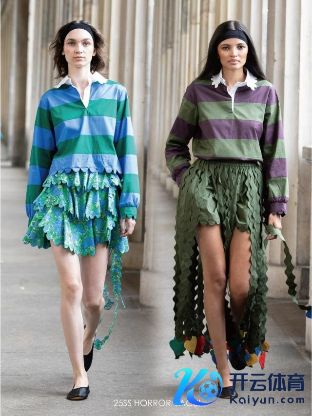 RABANNE 秀场中就有好多条纹叠穿的念念路,将条纹"整活"了,与夹克、卫衣、衬衫、短裙艰深会通,给东说念主咫尺一亮的闲雅感。