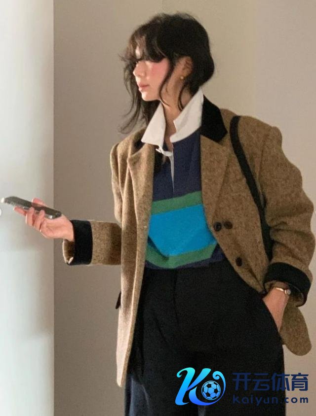 她还解锁了条纹 polo 衫 + 毛衣背心的穿搭,混搭出 5 分老钱,5 分带领风的人命力。