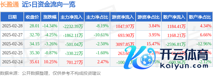 本站音书,遗弃2025年2月28日收盘,长盈通(688143)报收于28.01元,着落14.34%,换手率9.8%,成交量9.27万手,成交额2.73亿元。