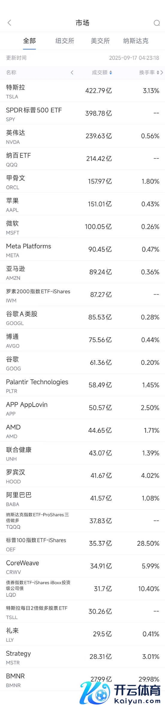 周二好意思股成交额第1名特斯拉收高2.82%,成交422.79亿好意思元。特斯拉9月15日提交挚友意思国证券走动委员会的文献领会,公司CEO马斯克于9月12日买入超250万股特斯拉股票,总价值约10亿好意思元。
