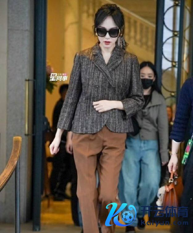 街拍中,她身穿咖色廓形西装套装搭配同色系阔腿裤,再加上尖头皮鞋、发带和衰颓比好意思的墨镜,作风散乱村炮,看起来满满的“中老年风”,单识破搭完全不像是女明星,完全是“路东谈主”级别。