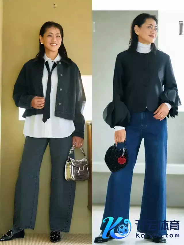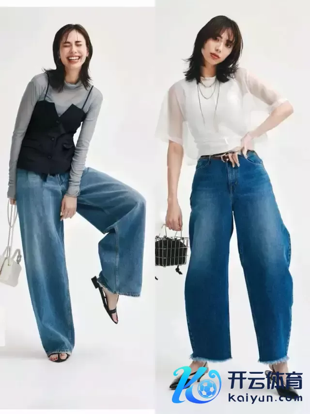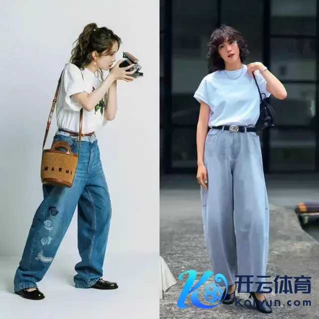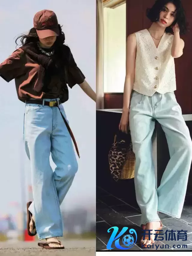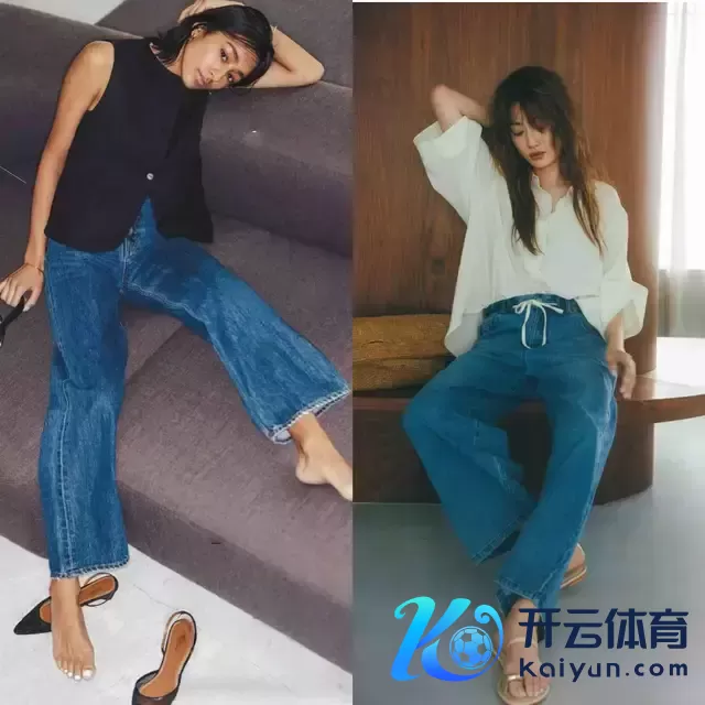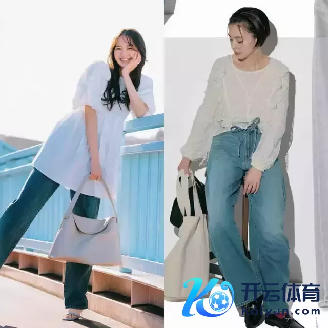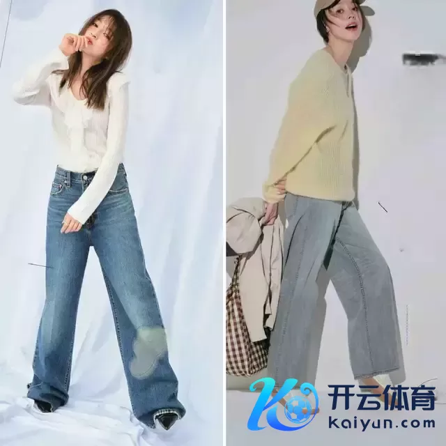 给与牛仔裤时,其实莫得必要给与破洞的项目,还不如径直给与上图右边这一条牛仔直筒裤,面料挺括有型,上身遵循遮住胯宽腿粗,让腿型更平直,同期也显质感。