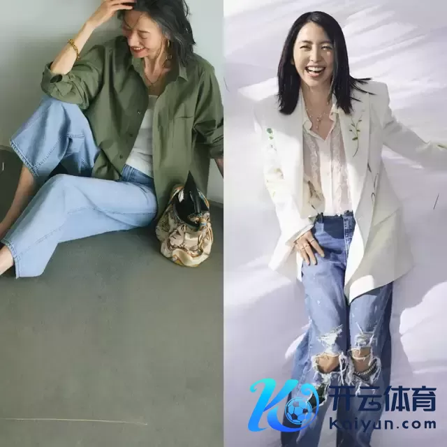 或是给与军绿色衬衫内搭白 T 恤,加上一条比拟有质感的牛仔阔腿裤,中年女性这么穿雷同显得检朴干练又减龄。