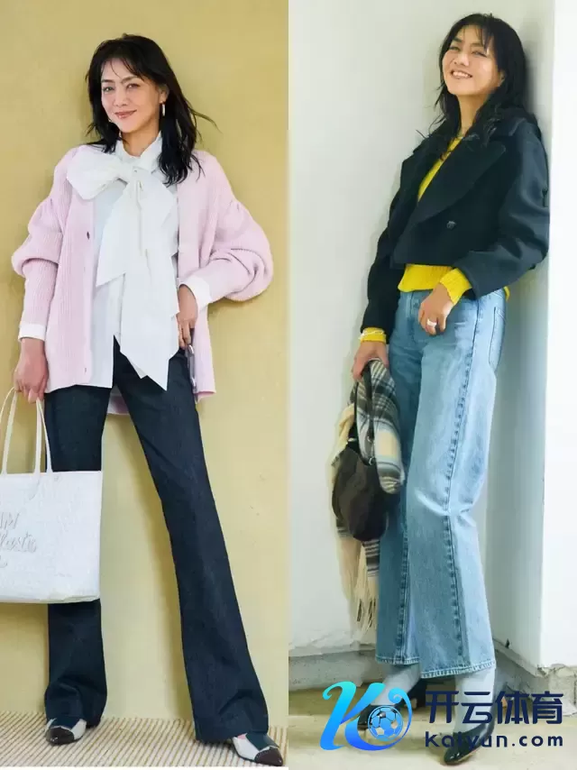 牛仔裤天生就领有先锋元素,穿在身上就能让你已而 get 到先锋感。淌若偏疼年青气质感,可选浅粉色诚挚开衫内搭白色衬衫和一条微喇叭牛仔裤,仙女感自显。