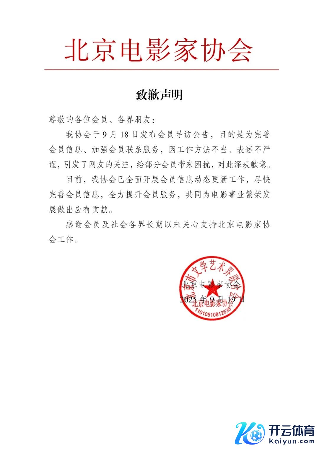 北京电影家协会就“公示失联名单”致歉:存在使命尺度不妥、表述不严谨的问题